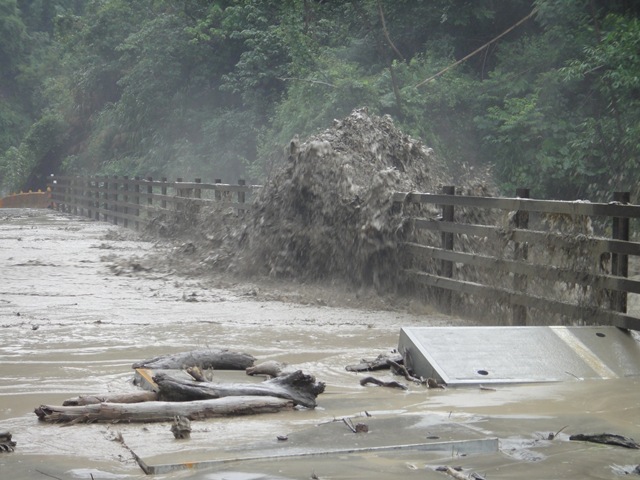 驟雨造成河水暴漲,使得山區道路中斷,傳出在河道進行消波塊與蛇籠作業的重機械都遭水淹沒的消息,Anu說,「聽說沒有機器都沒有開上來,還在河床。」但由於道路中斷,這項消息目前仍未獲證實。山區仍有間歇性降雨,相關路況將持續更新