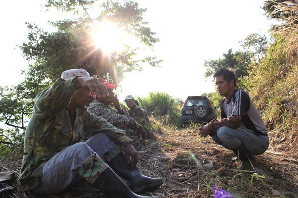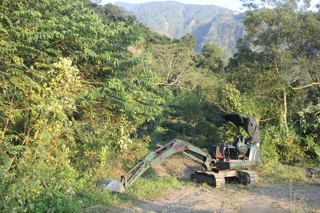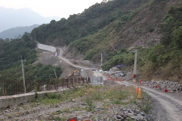 沿著怪手挖出的小路蜿蜒入山,吾東不斷強調,開路前他都仔細觀察過環境,盡量不去破壞。「我故意把路開得很小,因為不想讓別的車子上來。就像以前的路,都小小的,再怎麼風大水大,也不會垮……最上面還剩一公里,崩塌得太大,我就不想去動它。反正剩下一公里,用人力(揹水管上去)就可以了。」