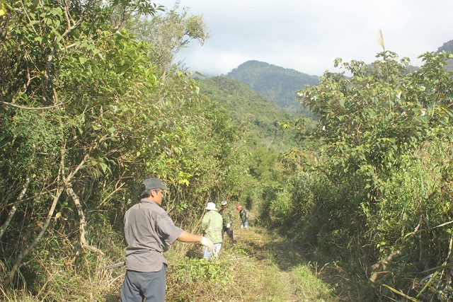 怪手開路之後,沿路要砍草整理,仔細評估安放水管的路線、位置,最後把水管揹上水源頭,將水接下來,這都需要前人的經驗和智慧才能完成。吾東說:「這都是以前老人家用過的(水源路),順著老人家走過的路就可以了。」他找來幾位對拉水有經驗的kama(排灣語,稱呼父伯叔輩)一起幫忙。「像這些kama們,還好有他們。他們都是以前幫部落接水的人,所以要怎麼弄,(管線)要放在哪裡,他們都很知道。如果沒有他們,只有我是不行的。」