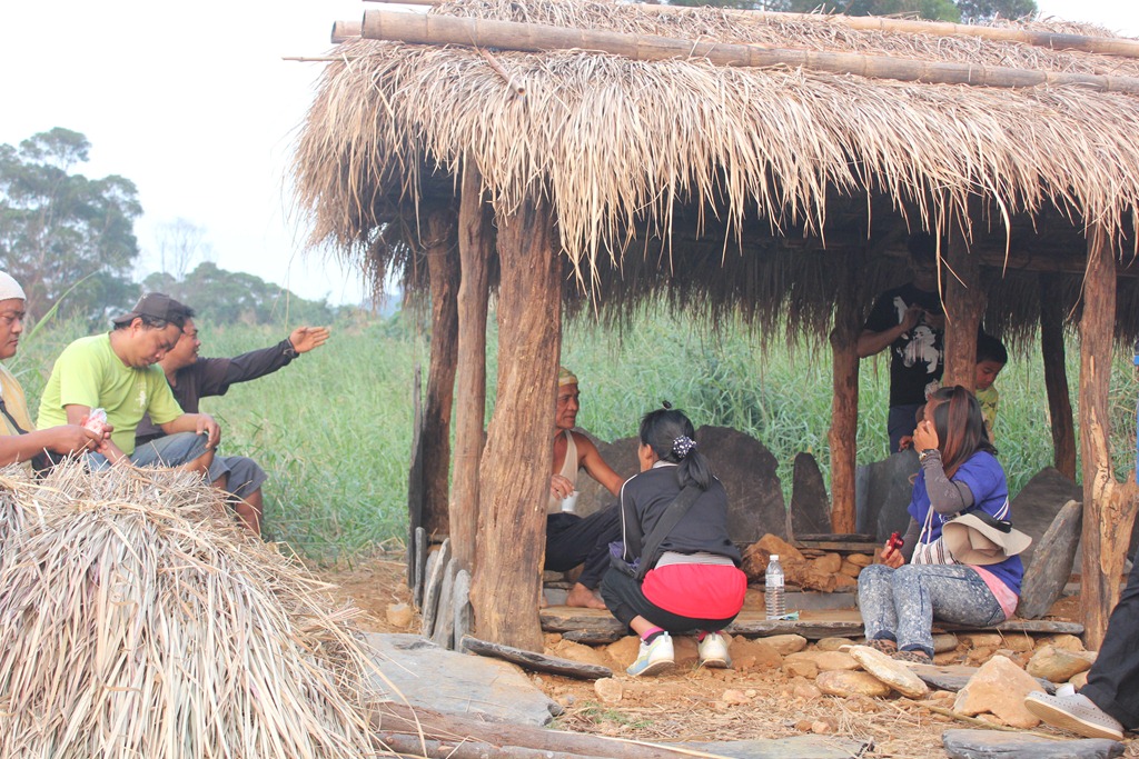 而齊心搭建的工寮,也勾起部落青壯年族人的回憶。大家從地板、床鋪的配置聊起,到門前要有乘涼的平台,都是兒時吃飯、烤火的場景,當時長輩對於生活規範的訓誡、部落的歷史故事,也在這些場景中自然流傳下來,是三個不同的部落,相似的童年生活經驗。在工寮搭建告一段落之後,一起工作的族人順勢席地圍坐,吃點心休息,隨口聊天,正是最能夠聽到這些生活故事的時候。