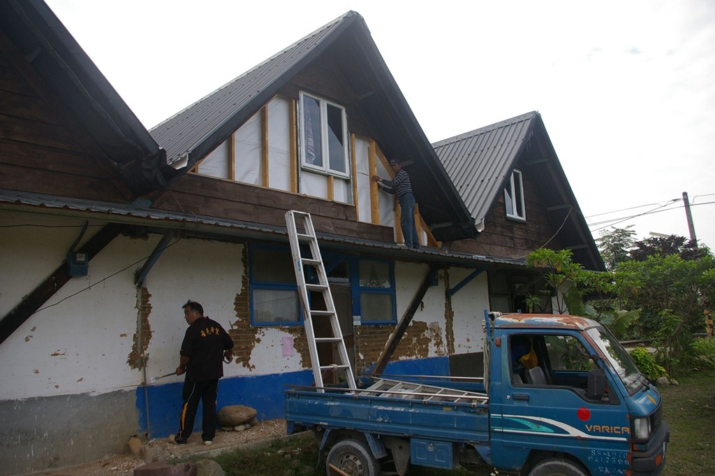 註1:依據當時的計畫書內容:「本協會與霧台鄉魯凱族大武部落於災後即投入尋求資源協助霧台鄉民造屋之事業。目前2010年2月4日動土,感謝日台國際扶輪親善 會、台日國際扶輪親善會、紅十字會台中支會,提供造屋資源及會謝英俊建築師團隊造屋設計,寶島義工團支援興建,共有20棟木造避難屋,在2010年6月 30日完工入住。」