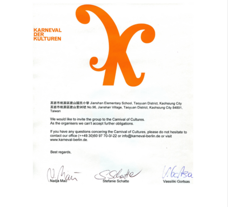 到彰銀匯款給建山國小,行員對於捐款給這麼偏遠的地區感到很好奇,我趕緊跟行員解釋建山小朋友受邀到德國演出正在募款,行員聽了問,匯到這個帳號就能給鼓隊出國,不需要再註明嗎?我說,不用,這是特別為出國募款的專戸,行員說,好!那我來看看能號召多少人捐款。台灣真是處處有溫情啊!^^