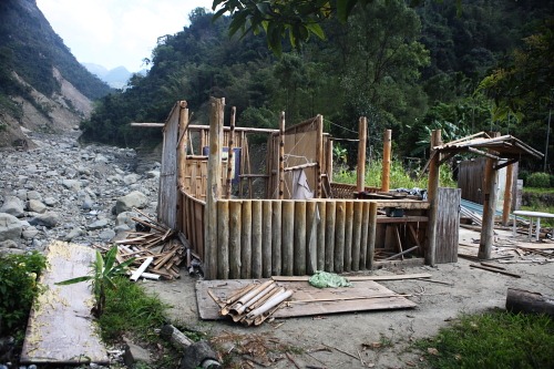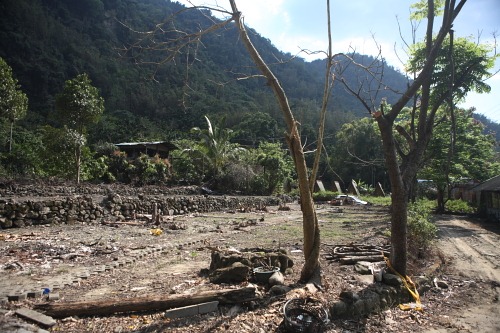 已被土石掩埋將近一半的「山美社區發展協會」,至今仍孤獨矗立在危顫的河岸上,遙望著荒涼的達娜伊谷自然生態公園…