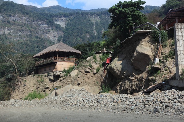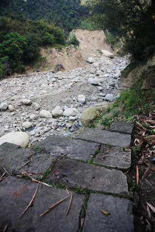 達娜伊谷自然生態公園的邊坡遭到嚴重淘空,很大一部份已遭土石流沖毀(陳又維攝)