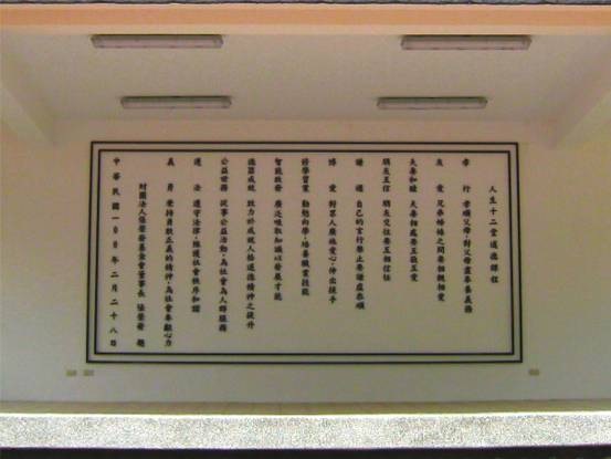 司令台正面的道德牆,採自張榮發基金會發行免費贈閱的「道德月刊」內容。