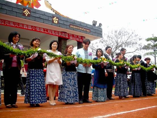 同樣身負災區學校重建重任的泰武國小校長伍麗華及長榮百合國小校長陳世聰也參與了來義國小的盛會。