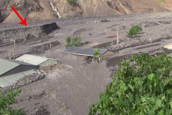 關於致災的原因,洪嘉明說,凡那比的豪大雨帶下驚人的土石量,才會對部落釀成災害。他舉了上游來社橋的例子說:「當時台南分局在清疏的時候,自橋面往下挖了八公尺的深度,但這一次,土石下來的時後,目前橋面都看不到了,而橋面上還淤積約有八公尺以上的土石。」