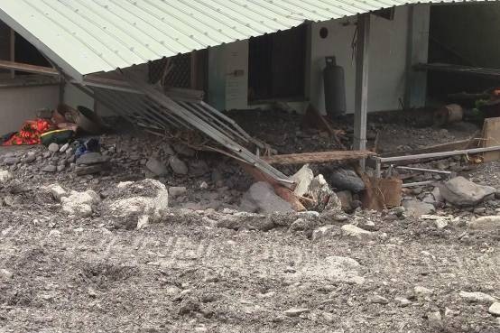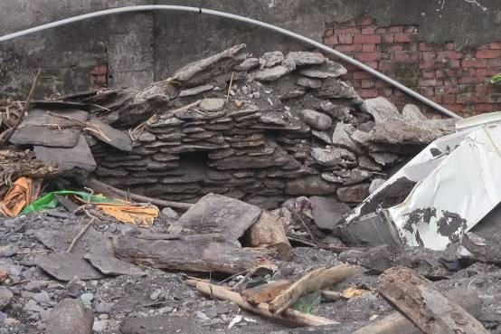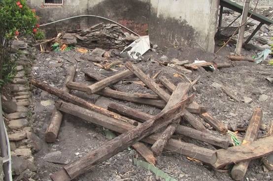 「這樣…..蓋起來就好了啦,沒辦法,不要挖了啦,挖起來東西,壞掉了」老人家用生硬的國語說著。她指著石板屋後方較高處,有欉沒被土石掩埋的花說:「那是我媽媽種的。我媽媽…78歲…」老vuvu不再說話了,或許不慣用的言語無法表達她的情緒,亦或無言就是她的心情。