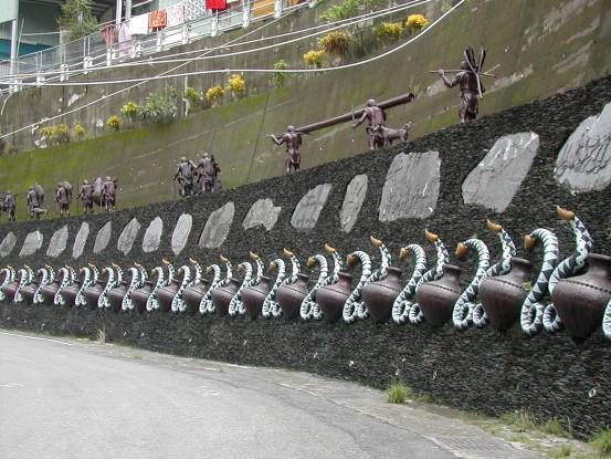 部落內的雕像,訴說著來義族人從舊部落遷徙至此建立家園的種種經過。