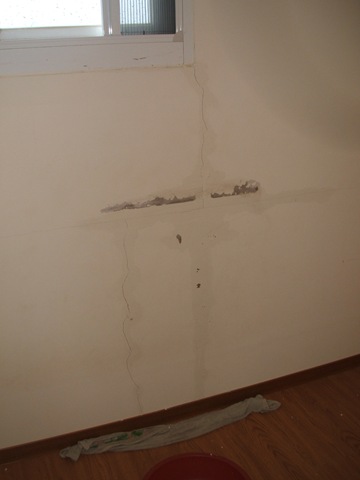 第二:每個窗戶的設計有問題,再結合度及密合度都不夠,雨水藉由空隙及細縫滲入室內,形成所謂的永久屋的牆壁也會掉眼淚(漏水)…..