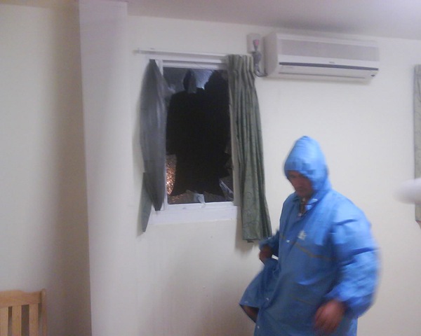 雖然窗戶破了,雨會打進來造池室內積水。但這整組圖來看,這朗個理由要成立仍屬牽強。因為,有冷氣的那張相片旁邊的窗戶是破的,且有窗簾,是在晚上拍的。而其他幾張跟窗戶有關的卻都沒有窗簾,而且部分相片可以看出是白天拍的。,其中一、二、五、六張看起來有關聯(排除文首那一張)