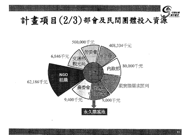 針對上圖的17項計畫,張恆裕說明,這17項計畫略有修正,目前已將其中的9項計畫送交給紅十字會,希望能夠通過紅十字會的審查,由紅十字會的八八善款來做經費的挹注,後續的計畫「我們也在努力當中,當然也是尊重紅十字會他們的機制。」