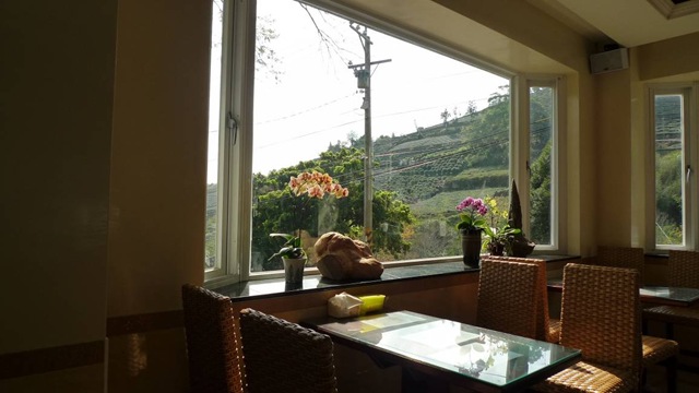 可以內外兼顧的經營模式,讓客源不穩定的銷售地點,部落咖啡,可以在兩邊兼顧的環境下,讓部落咖啡有了永續經營的生存之道。(上圖窗外對面的茶園與咖啡園是方政倫家中種植咖啡與茶的地方)