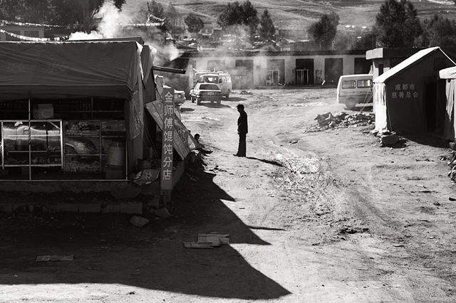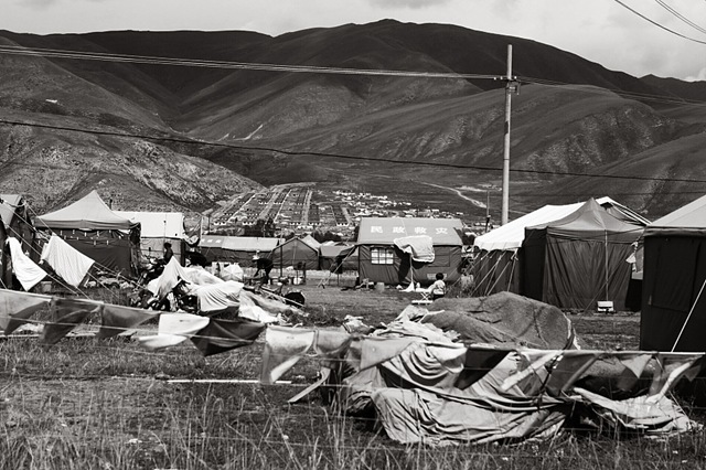 從西寧搭乘臥舖巴士橫越海拔4,800米高原,在歷經15小時顛簸車程,以及高原反應的痛苦折磨後,我在出發次日清晨8時許,拖著病體抵達這個空氣稀薄、風沙四起、帳棚林立的玉樹重災區。彼時已是災後半年,結古鎮看上去,竟和災後僅僅1個月的舟曲沒有太大分別。