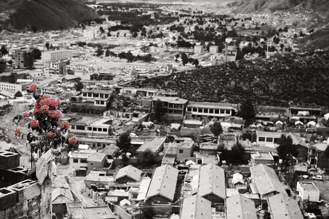 一束紅玫瑰被放置在結古寺旁的山坡上,祝福玉樹能儘速完成重建,罹難者家屬也能早日走出傷痛