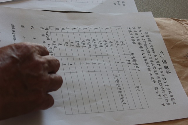 目前的組合屋入住方式,是採取每半年簽一個借住契約的方式;例如今天簽了第一張借住契約是7/12至12/11之間有效的借住契約,家具的部份也以借據形式逐一請戶長簽名蓋章。每間組合屋裡頭的設備計有:電視機、冰箱、洗衣機(兩戶共用一支)、瓦斯爐、排油煙機、流理台、電腦桌、電視櫃、餐桌跟餐椅4支、床1支、熱水器與書桌兩個等等,是由紅十字會張羅提供,特別提醒族人離開時不可以帶走,屆時需要點交歸還的。