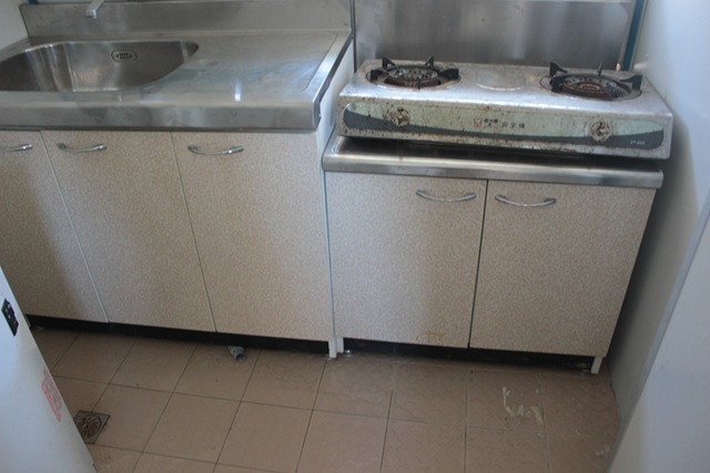 (左)簽了借據,族人這時還不知道,杉林組合屋這邊因為人煙比較少,前陣子宵小很多,洗衣機熱水器很容易被拔走(右)住這間房子的人比較倒楣,瓦斯爐的轉頭被拔掉,流理台沒有接水管水會直接衝到地板(較多戶有這個共同的問題)