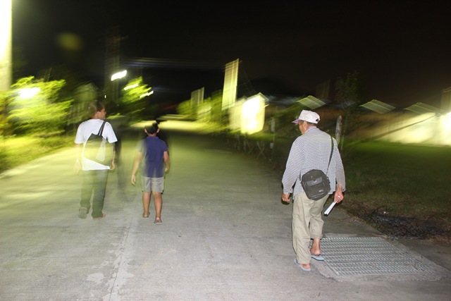 Tama Masaul從小林活動中心走回組合屋的背影(右一),不熟的路,走起來特別的黑與忐忑