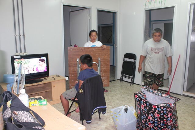 今天的天氣真的太熱了,下午大家整理組合屋;到了晚上七點,大家集中到活動中心去開會,交流今天入住問題時,都忍不住打趣:「你看我晒到像蝦子一樣」、「在這裡光流汗就夠了咧,(聞自己)好臭」。有婦女中午太熱沒吃飯,一整個下午整理下來,覺得自己「快要昏倒」。