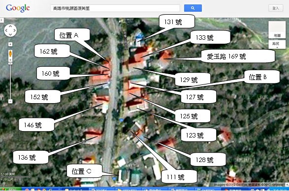 左邊較縮進去一點的房子即是Tama Masaul的老家,現在已經沒有痕跡(20120611早上6:57檔案照,復興里長提供)