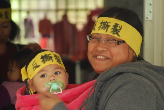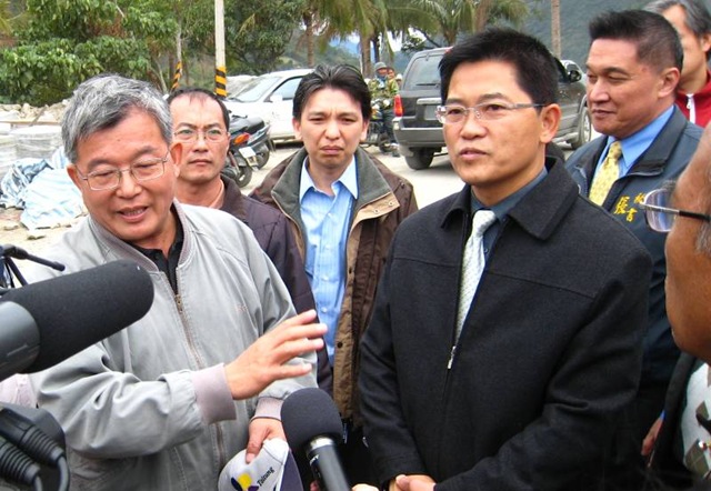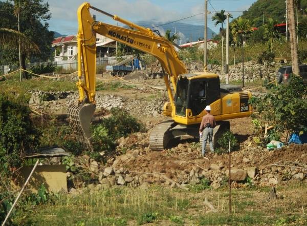 1月29日那天,重建會副執行長陳振川、縣長黃健 庭、城鄉處處長許瑞貴和金峰鄉長章正輝等參與重建的主要官員興高采烈的在西側舉行海棠永久屋落成典 禮,章鄉長還贈送一把象徵勇士的排灣族配刀給陳振川。同一時間,推土機居然就開進東側土地。政府重建,在傷口灑鹽、大剌剌的行徑,置土地所有人於何地?到 底是急於重建政績,還是吃人夠夠?由此窺知,地主權益多麼被漠視。