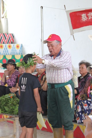 這次受邀擔任講師的老人家們,在結業典禮上,輪流為小朋友戴上編織頭飾,用母語道出勉勵和祝福。老師也將孩子們在課程中學習釀製的小米酒開封,讓孩子們以自製的小米酒敬奉給老人家。
