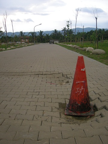 連鎖磚也出現凹陷或有裂隙的狀況,如何反應上去並獲得解決還不清楚。