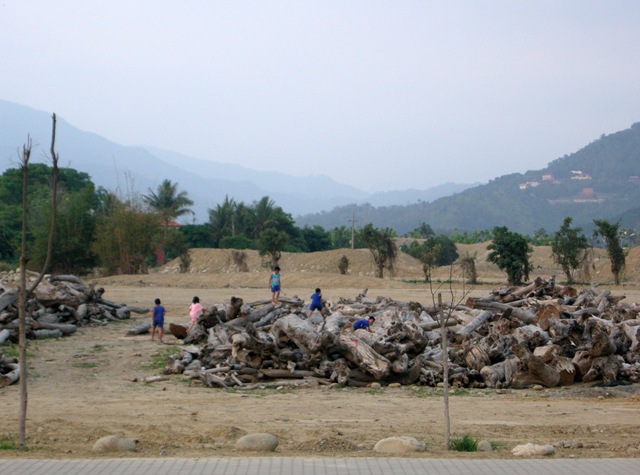 希望廣場和愛農教會前的空地,是居民認知中的「學校預定地」。現在堆滿了漂流木,成為孩子們嬉戲穿梭的遊樂場。