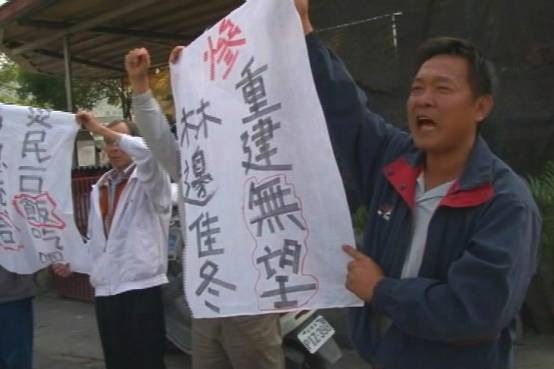 本月25日瑪家農場永久屋落成典禮,馬英九總統受邀參加,而一群來自林邊鄉、佳冬鄉重災區的鄉親,為了日前政府太陽光電躉售政策大轉彎的事件,在場外舉著白布條向馬總統陳情,但在優勢警力的阻隔之下,民眾陳情的布條遭員警扯下,只能眼巴巴地看著總統的車隊呼嘯而過。