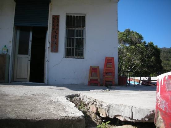 ↑但是即使興建了擋土牆,仍無法抵抗大自然的力量,所以,教會前的地面,又裂了。