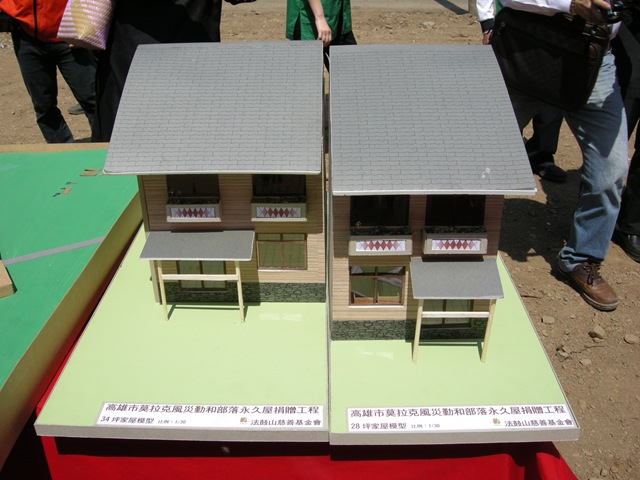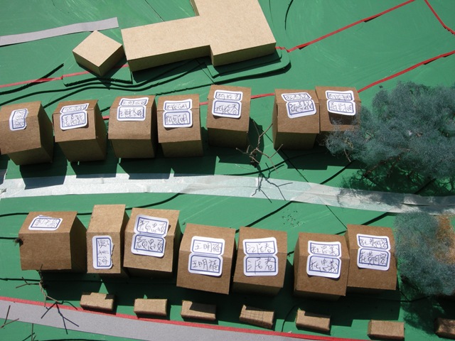 由法鼓山援建的永久屋。模型貼上了未來屋主的名字,房舍安排都是二十戶未來住戶自己選定的。