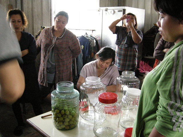 一個星期日的下午,勤和里曾江清水家門前的廣場,聚集著年輕婦女、男子、滿地亂跑的孩子,加上湊熱鬧的狗兒們,在笑語喧闐中,一起學習製作Q梅。這一系列的產業課程,是勤和樂樂重建協會在4/2確定永久屋動土後,陸續與外界資源合作展開的課程。從上周的青梅酵素,到本周的Q梅,各戶帶著自家種的梅子和玻璃罐前來,製作分量隨意,憑個人意願參加,看重的是一起聚會和學習。