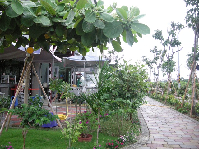 即使是行道樹,阿瑞也一併照顧。她說:「我都沒有想到自來水很貴內,反正在我這裡,我都給她一起澆水。我喜歡樹長大了、花長大了,就很漂亮。我的客人在這裡一邊吃麵、一邊欣賞。」