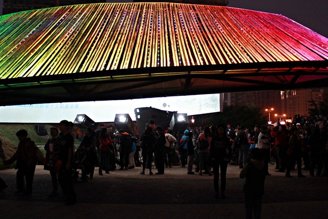 近七十公尺寬,弧度達270度的投影幕,外圍則是用桂竹搭配LED燈泡,對許多部落而言,桂竹也可作為建材