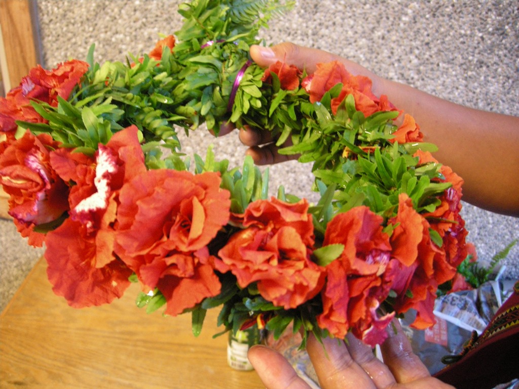 迎賓禮以傳統習俗為客人戴上花環,都是當日採摘的新鮮花卉,由接待家庭的ina親手編織,才能表達心意。