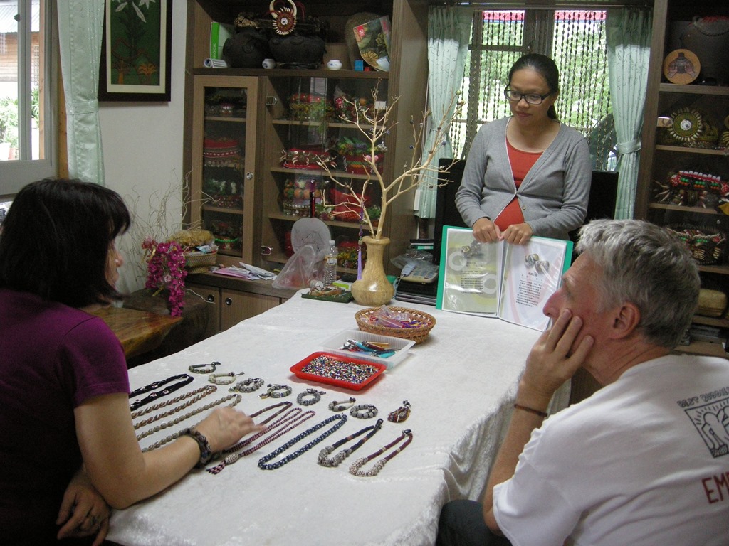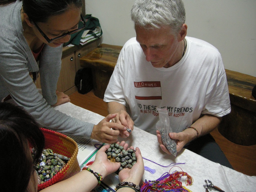 光是好茶村就有超過二十間手工藝坊,從編織、串珠到傳統陶珠不一而足,展現族人的手藝天賦與部落深厚的工藝底蘊。傳統陶珠有不同的配色和圖紋,都代表不同的涵義。賓客可以挑選自己喜歡的陶珠,搭配顏色,DIY屬於自己的紀念品。