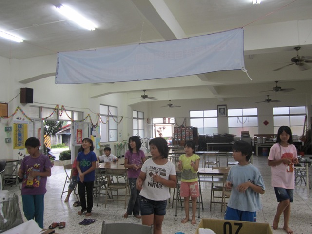 在100年,增加了高雄市社會局人力支持計劃的資源進入關山社區後,我們著手提昇社區關懷據點的服務品質,另外在社區兒童青少年部分,也藉由暑期體驗營隊計劃及結合大田社區「社區主人翁青少年志工培訓」的課程,讓其有機會參與社區的活動。有一天,社區有一個小朋友看到社區的阿公阿嬤練習舞蹈,也提議讓社區小朋友們組織一隊,美玉就把這個任務交給小朋友們自己去運作。