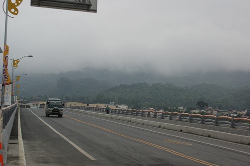 六龜大橋是聯繫荖濃溪兩岸民眾最重要的一座大橋。去年八八風災鄉內多座大橋被水沖斷之後,六龜好像頓時被切割成個一個聚落,人們對於災害引起的恐懼也一直有惶惶不安的壓力。一年多來,鄉內到處都是施工的工程,漫天的沙塵,巨大的砂石車。