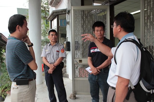 章先生(右二)與桃源分駐所所長(右三)、林務局人員(右一),在爆發恐嚇事件到桃源作筆錄後交談