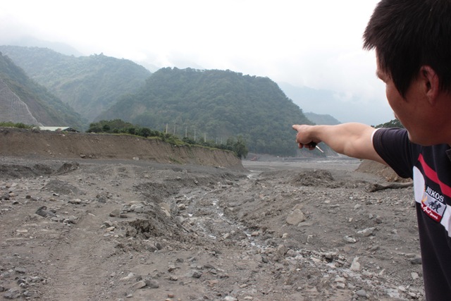 原本相連綿延的芒果園,因為Bunat土石流被從中截斷,成為新的河道,也成為掩埋一級漂流木的好地點,卻是章先生向布農族租來耕種的私有地。