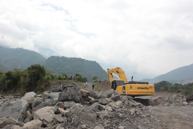 章先生說:「更早之前我就發現不知道誰把我的怪手拿去開到壞掉,丟在河床上。他們什麼都拿;像寶來那一群人,已經在這邊靠木頭維生很久了」。