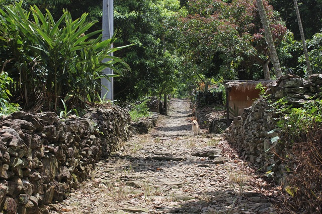 舊達來一景。度過百年歲月仍完好的舊部落,族人表示,以前用石頭堆砌道路的工法,「水很大都不會沖到,水會往下流,沙子就沉在石頭縫隙中間。」下大雨也不易沖蝕道路和地面。