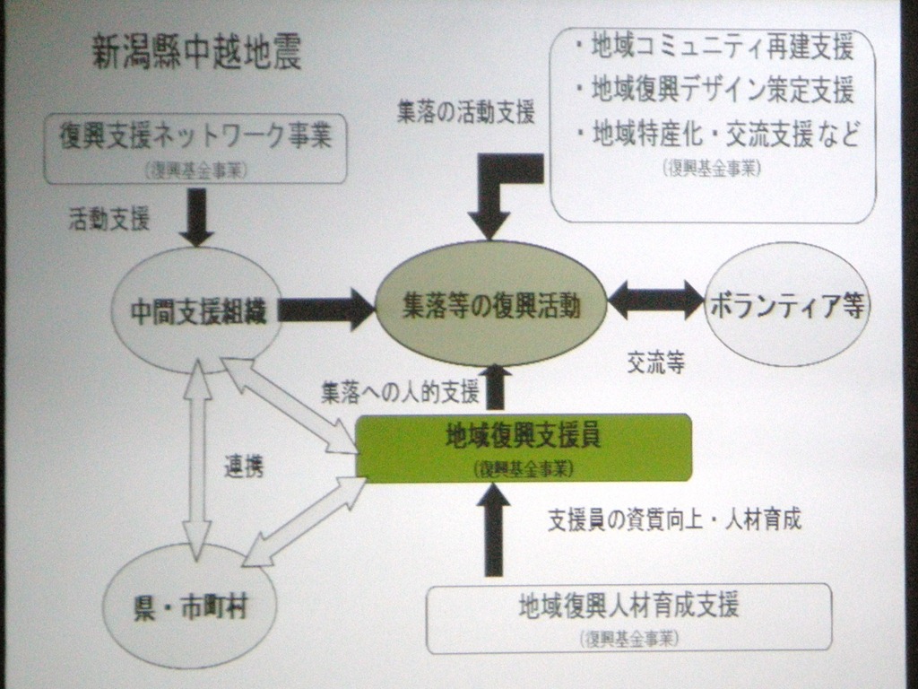 新潟縣中越大地震的地域復興支援員計畫。(畫面翻攝自福留邦洋論壇現場簡報)