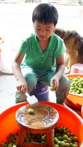 南沙魯的婦女在今年接到了幾個單位的團體訂單,婦女們解釋脆梅的製作過程,首先必須先撿選,揉上粗鹽脫澀去除梅子的細毛,接著將梅子一顆一顆拍碎,再浸泡在鹽水中一夜,再用清水沖洗梅子一整夜,再將梅子放進脫水機中脫去水分,接著將梅子倒入裝有煮好的糖水的桶子中,這個步驟要重複一次,第三次的糖水則是裝罐時跟梅子一起裝進罐中(此作法可能因為每一部落婦女的習慣不同而有微調)。