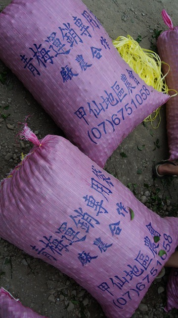 註1:梅子的摘採分為兩種方式,手採以及竿採,竿採是指人站在梅樹上,以竿子敲打梅樹,下方有其他人用網子鋪在地面,再將打落的梅子集中收集。