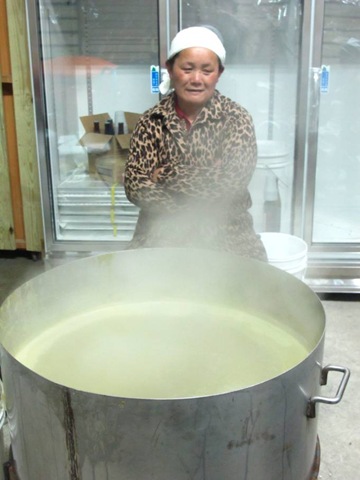 帶著寒意的勤和平台四月天的夜裡,Gina Mina跟先生就在煮鍋前看守著。忍不住問她:「累不累啊,可以先熄火,白天再繼續嗎?」,她微笑的說:「這樣不好啦,雖然也有人這樣做。沒關係,我們會輪班,明天一早五點多又會有人來了。」第三天中午,終於熬煮完成的梅精成品黑亮而帶有光澤,像是回應了Gina Mina的堅持。