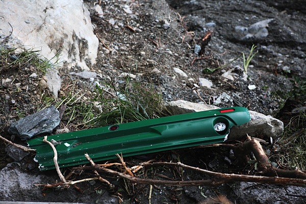 疑似是創意旅行社遊覽車的後保險桿,目前蘇花公路上都還沒找到車體
