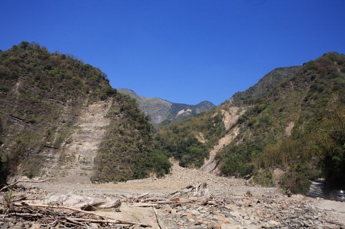 阿里山一帶河床砂石淤積嚴重,幾乎已從河床變成石床。