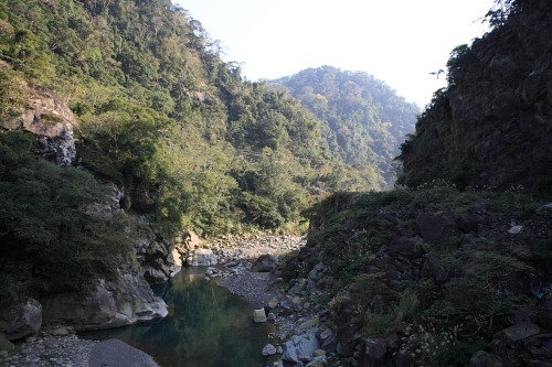 由比麟大橋眺望那羅溪溪谷。政府預定要在比麟大橋下游100公尺處興建比麟水庫,屆時所有臨水部落恐將陷入遷村危機,當地生態也會受到影響。