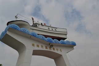 濕地旁,魚塭裡的水車依然轉動著,與魚塭相對而立的是社區活動中心大門上的「發財號」漁船,甘景勻說,崎峰興盛的養殖漁業,確實因為風災而遭受衝擊,「有些人慘賠幾千萬,有些人真的因為受不了這樣的打擊,但這些都已經過去了。」一句「這些都已經過去了」彷彿道盡了常民生活的樣貌,水車依然轉動。